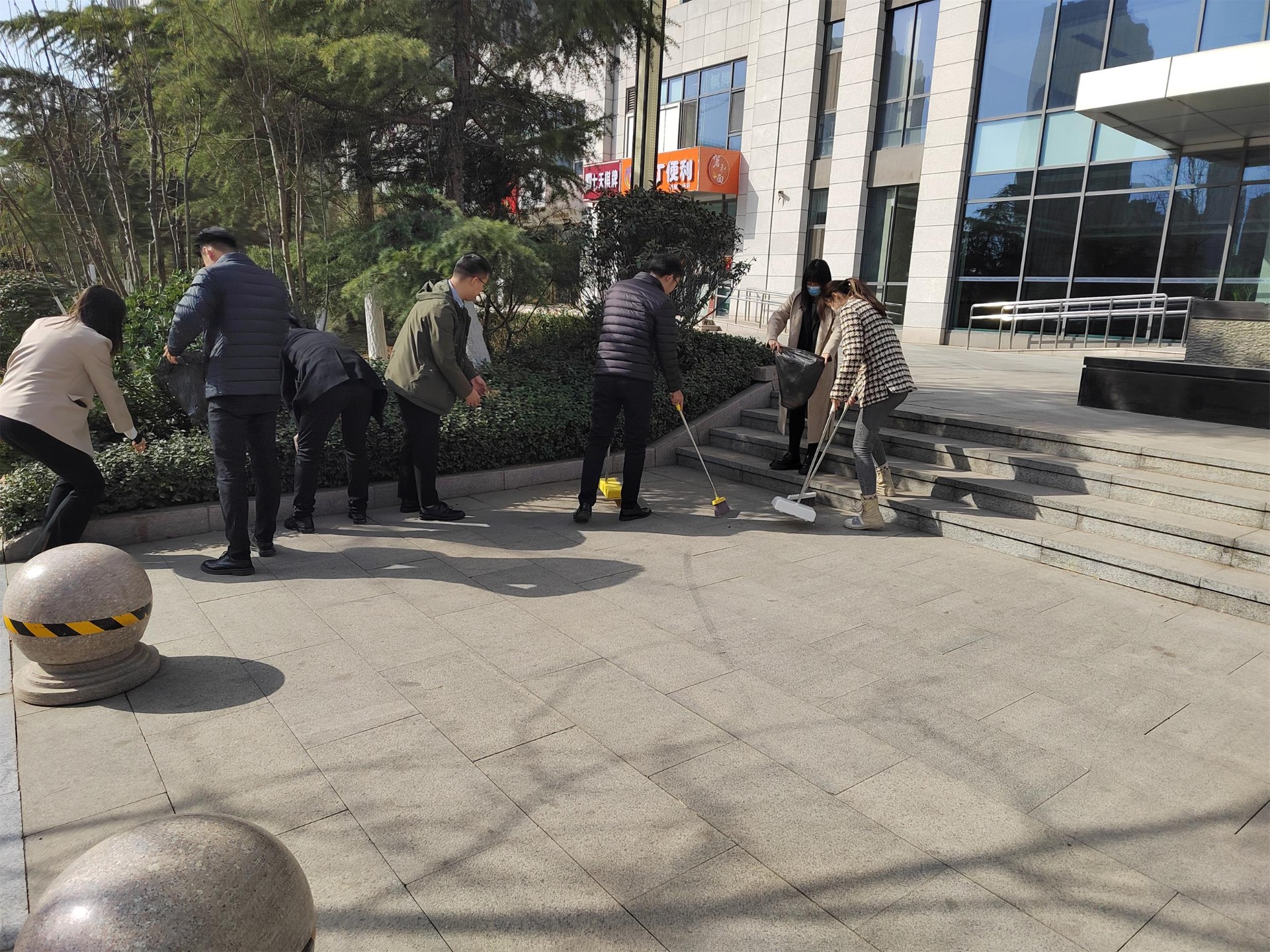 3月9日,在第59个“学雷锋纪念日”来临之际,为进一步弘扬雷锋精神,努力践行“为人民服务”的初心和使命,水发新能源党支部组织党员职工开展“弘扬雷锋精神,践行志愿服务”主题党日活动,党员们积极发挥模范带头作用,带领职工切实开展活动,与楼宇物业打成一片,共同维护办公楼前卫生环境。