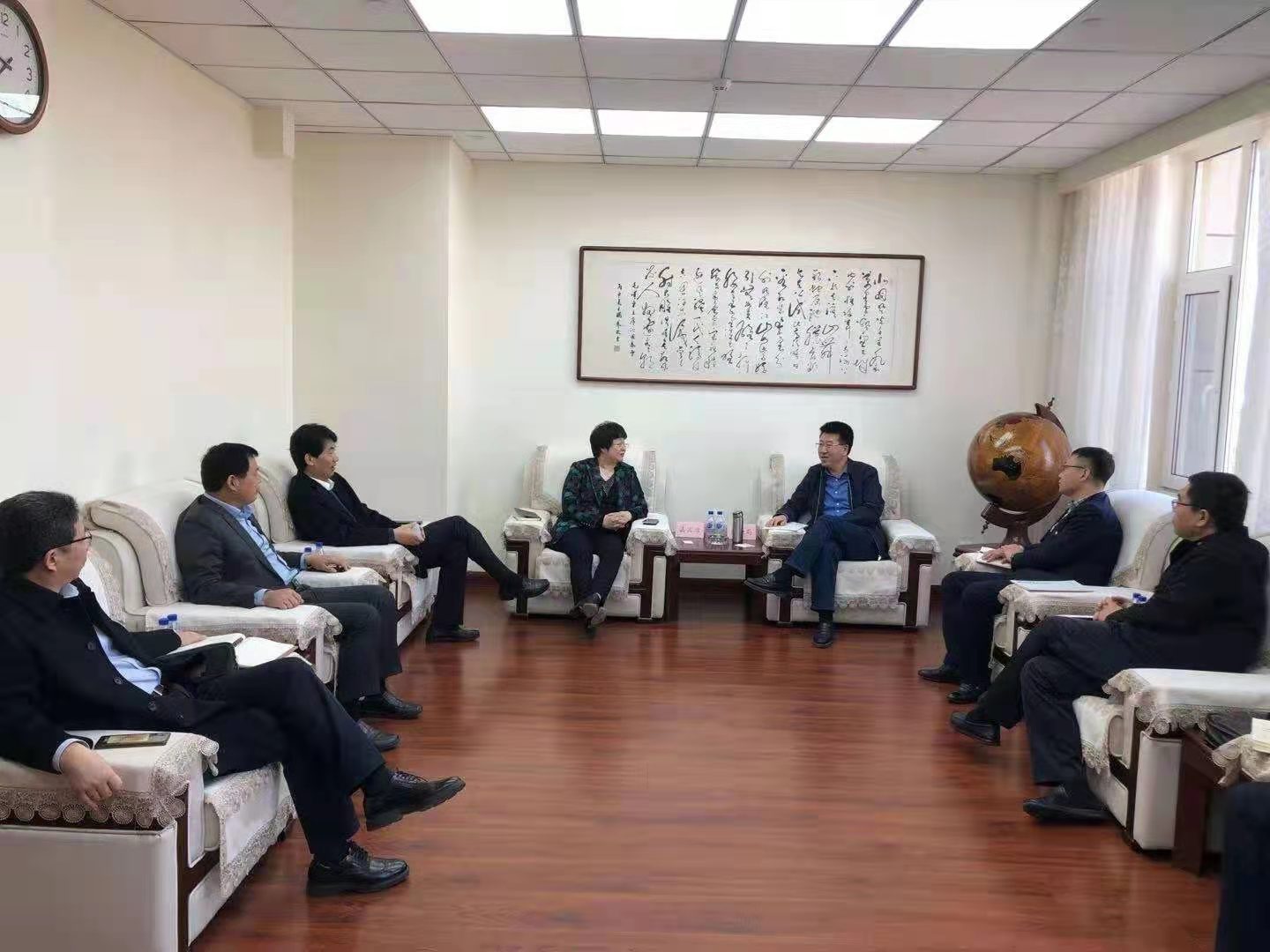 1月11日,水发集团能源事业部总经理赵光敏一行到山东省能源局,就“吉电入鲁”项目、“十四五”能源规划等工作,与山东省能源局发展规划处处长朱圣焱沟通交流。