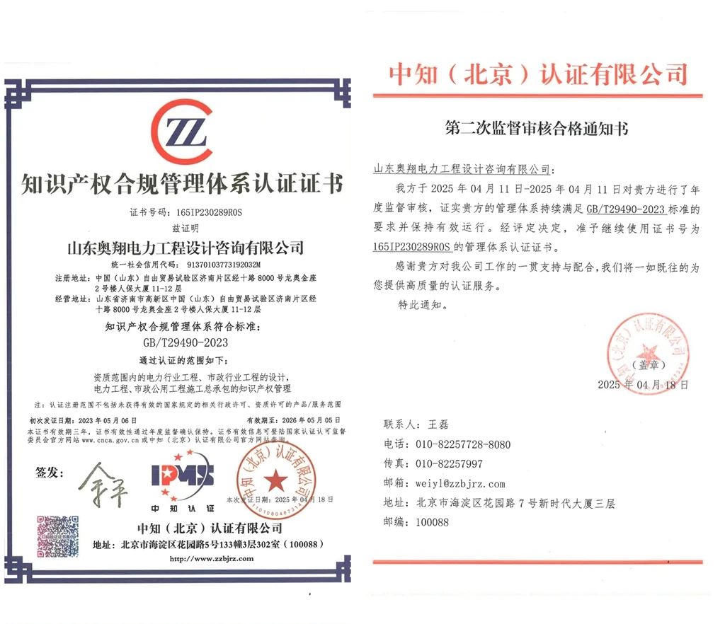 山东奥翔电力工程设计咨询有限公司再获国家级认证