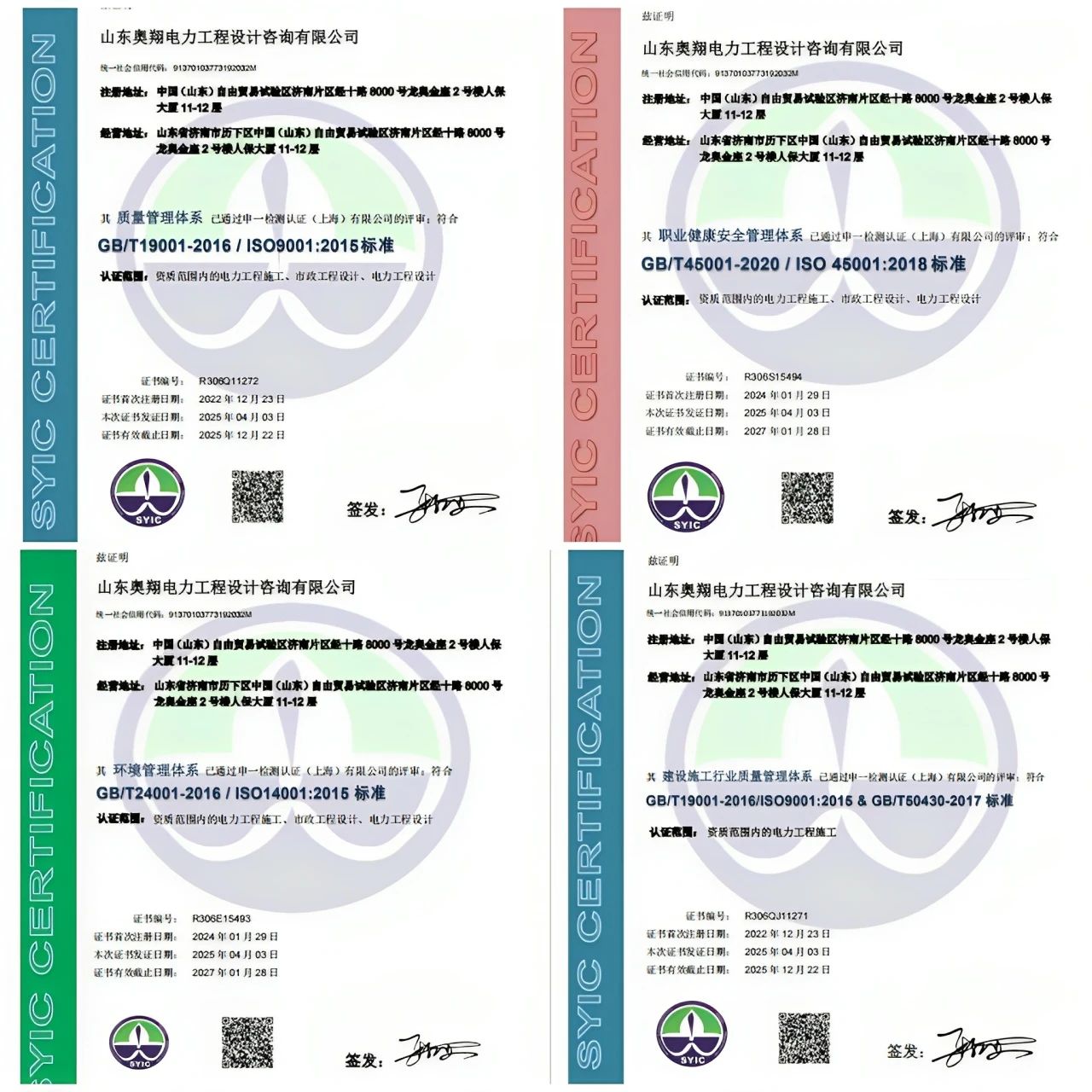 山东奥翔电力工程设计咨询有限公司顺利通过ISO三体系及GB/T 50430认证