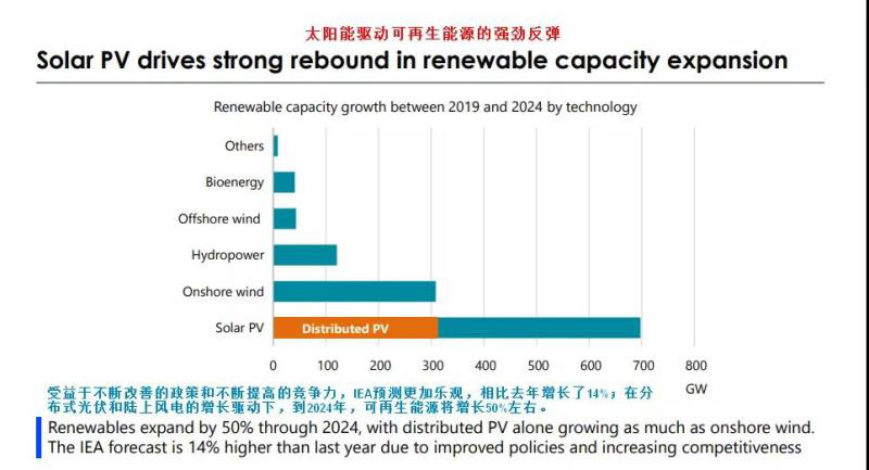 尽管2018年全球可再生能源发展陷入停滞,但今年将会有比较明显的反弹——增长12%,光伏将驱动未来四年最强劲的增长。