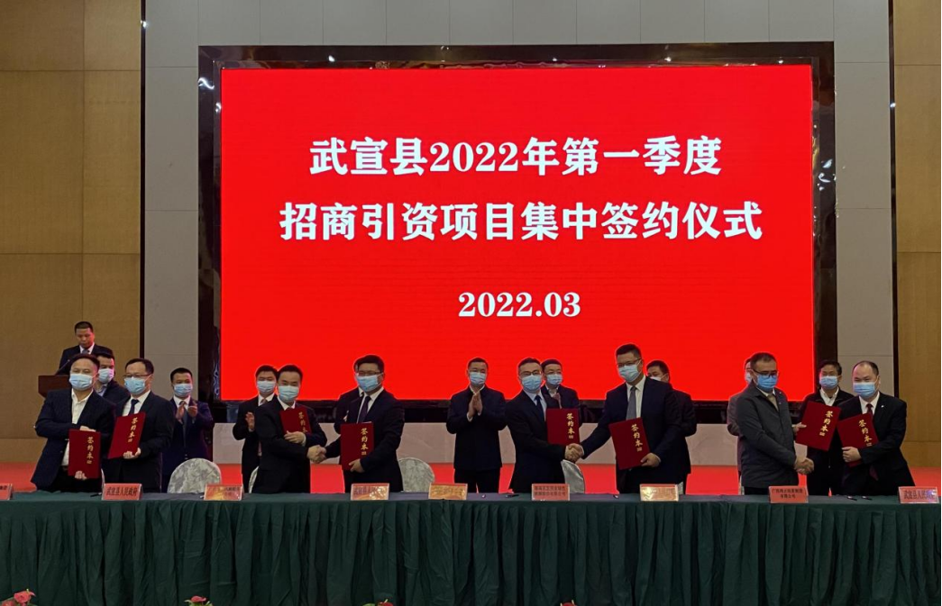 近日,水发兴业能源集团党委委员、副总裁周青一行应邀参加广西省来宾市武宣县2022年第一季度招商引资项目集中签约仪式,与武宣县签订《广西武宣县整县分布式光伏项目合作协议》。签约仪式由武宣县委副书记陈礼锋主持,来宾市市长廖和明、武宣县委书记杨世爵、县长陈前平出席仪式。